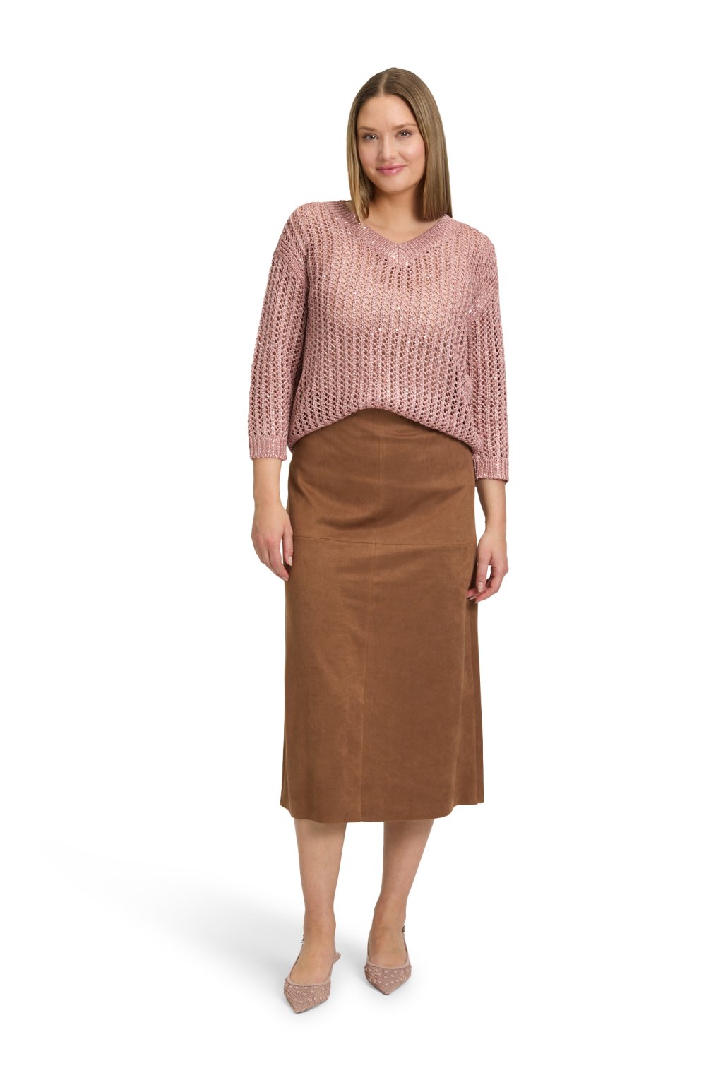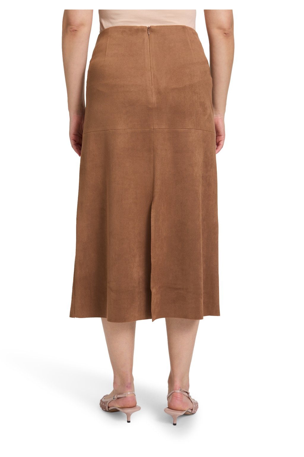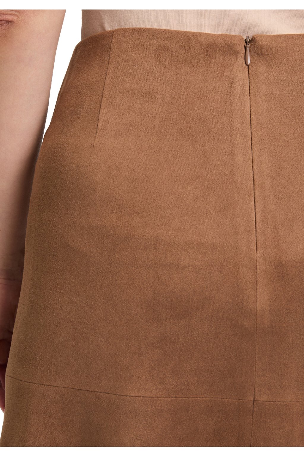 Stylová semišová sukně Betty Barclay v jemně hnědém odstínu nugát se zapínáním vzadu na zip. Měkký materiál s elastanem zajišťuje pohodlné nošení. Perfektně ladí s kozačkami a elegantním svetrem.
