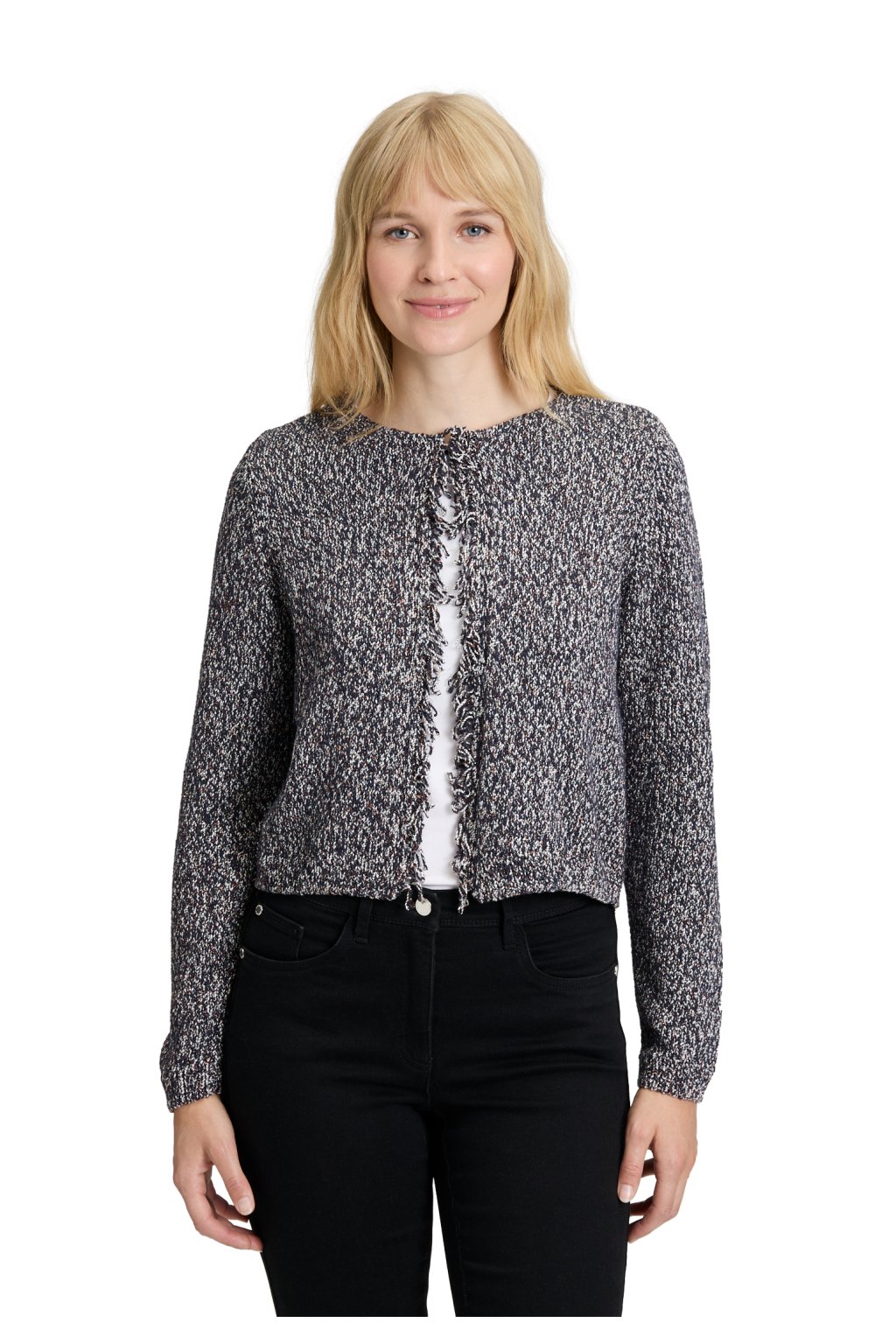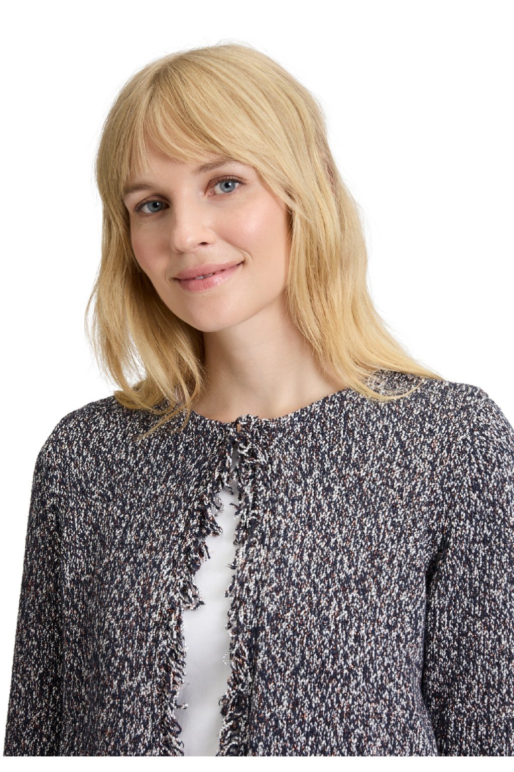 Ležérní a přitom velmi elegantní kardigan Betty Barclay s háčkovým zapínáním u krku. Melírová kombinace modré a hnědé nitě dodává originalitu. Skvěle vynikne přes jednoduché tričko či šaty.