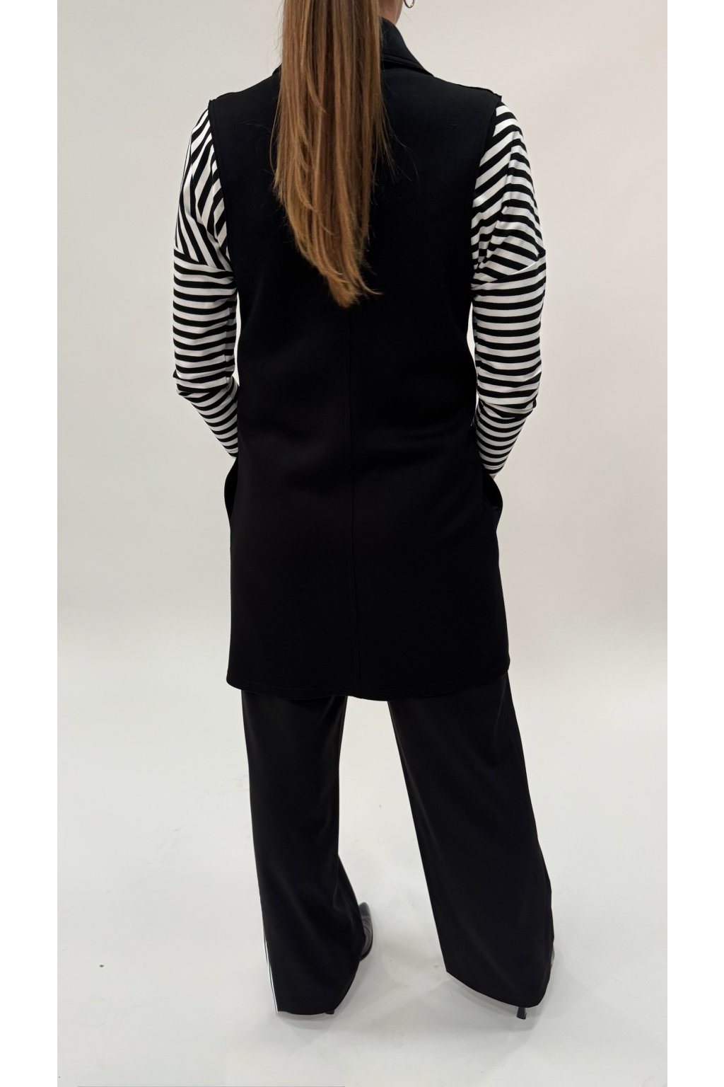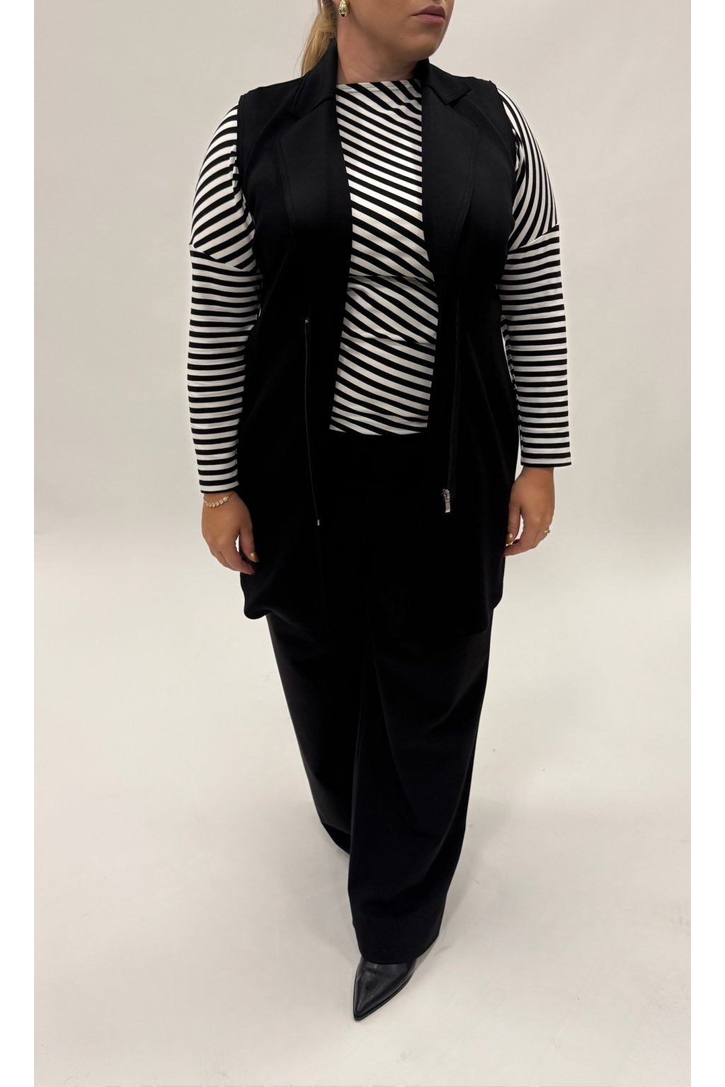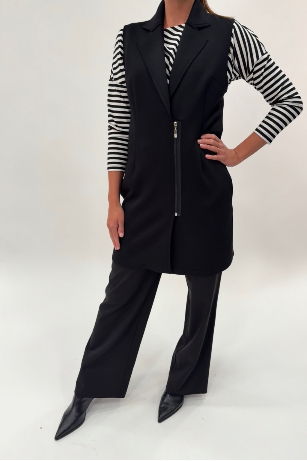 V této elegantní vestě zazáříte! Díky vyššímu podílu viskózy působí luxusně, krásně splývá a je mimořádně příjemná na dotek. Jemný lesk materiálu dodává modelu elegantní business look, který se hodí jak do práce, tak na společenské příležitosti. Vesta má šálový límec, zapínání na dvě patentky a z boku najdete dvě praktické, hluboké kapsy. Tato vesta má zapínání na zip ale dá se kombinovat i s páskem, který krásně zvárazní dámské křivky.