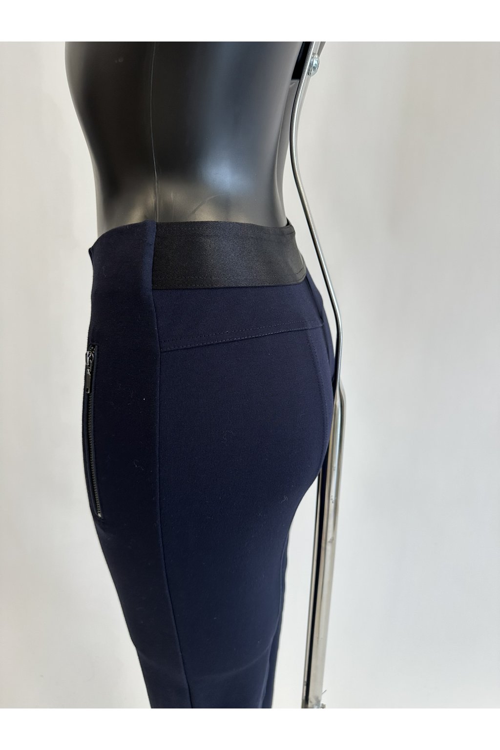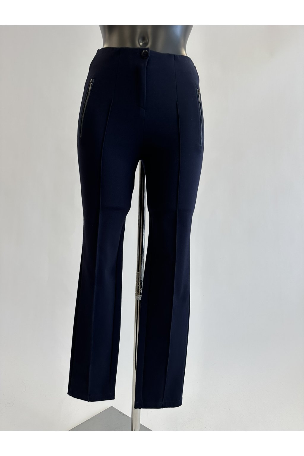 Elegantní úzké kalhoty z kvalitního, pružného materiálu perfektně padnou a poskytují maximální pohodlí při nošení. Klasické zapínání na zip a knoflík doplňuje praktická guma v zadní části pasu, která zajišťuje příjemné přizpůsobení postavě. Stylovým detailem je ozdobný zip, který dodává kalhotám moderní a sofistikovaný vzhled.