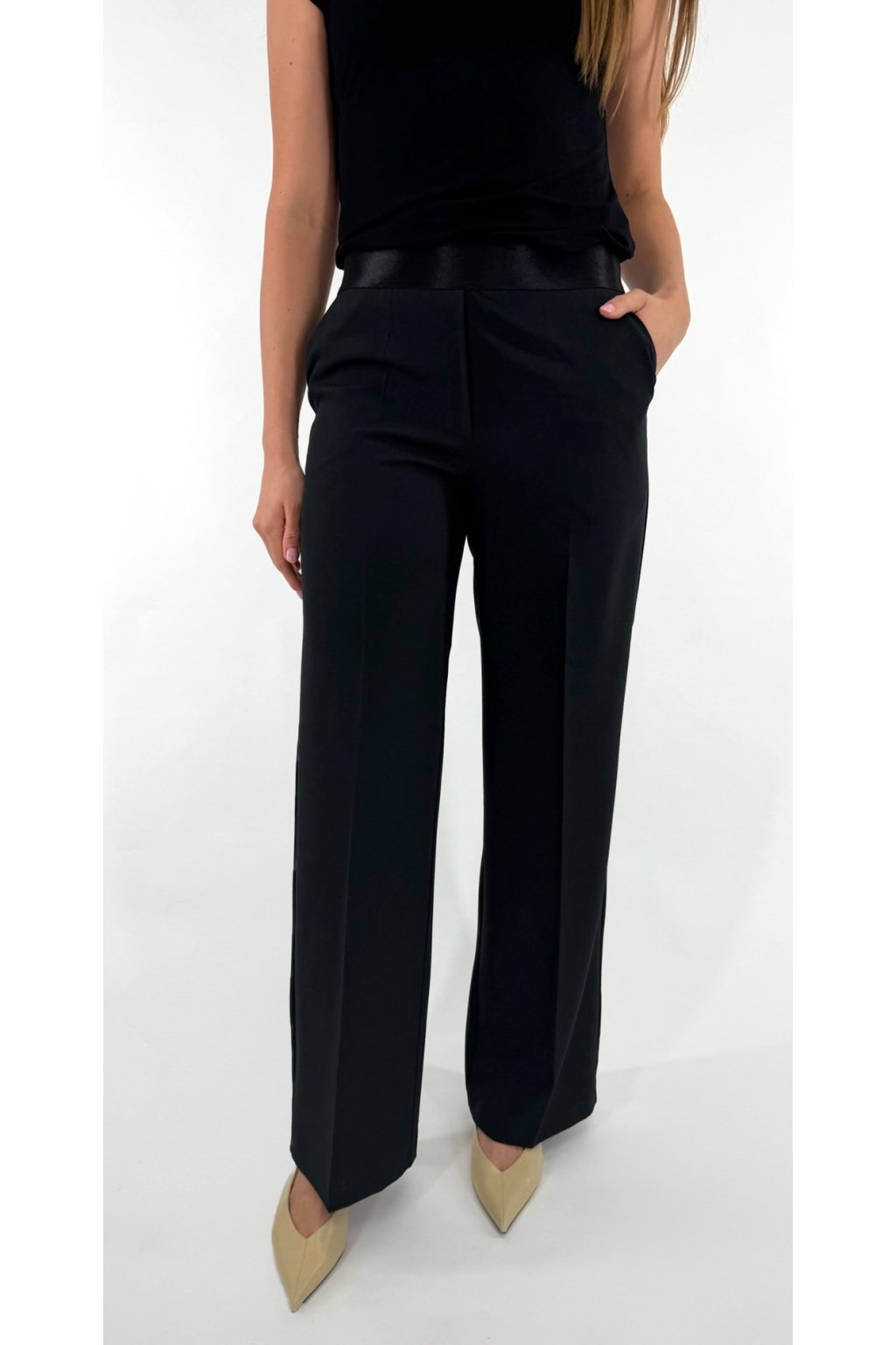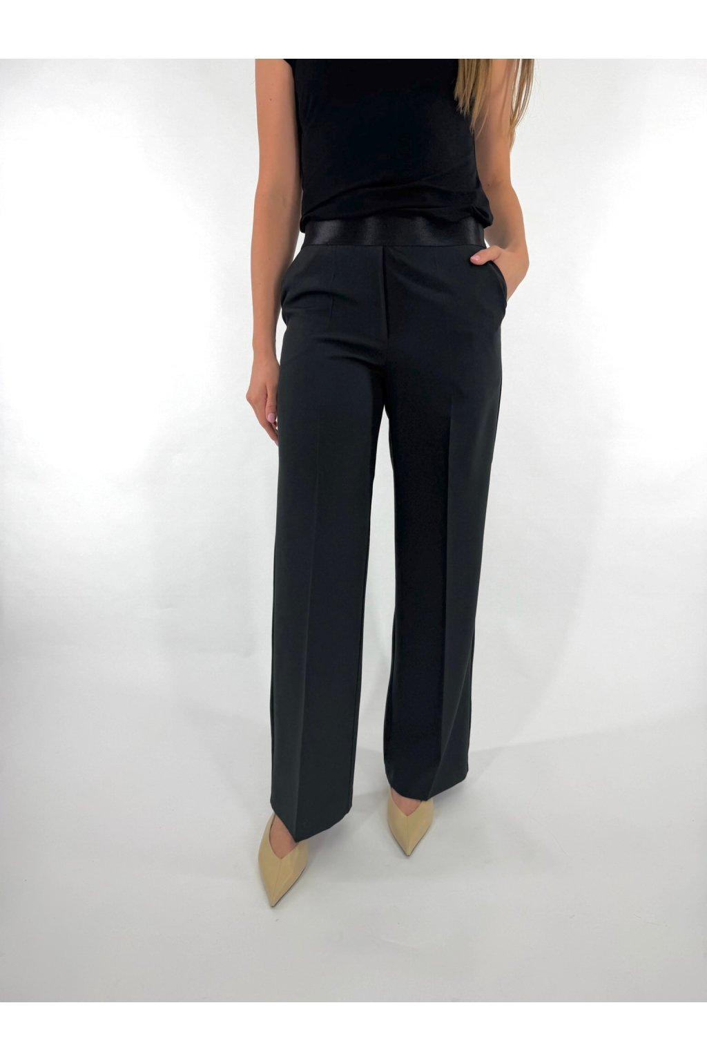 Široké nohavice jsou hitem sezóny a v kombinaci s pukem vypadají naprosto luxusně. Abychom však neobětovali pohodlí stylu, v pase jsme zvolili pružnou gumu. Tyto kalhoty jsou stvořené pro vrstvení – doplňte je naším sakem nebo vestou a vytvořte nadčasový outfit, který lichotí každé postavě. Materiál: 88% Polyester, 12% Elastan