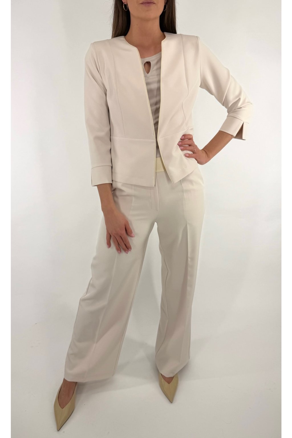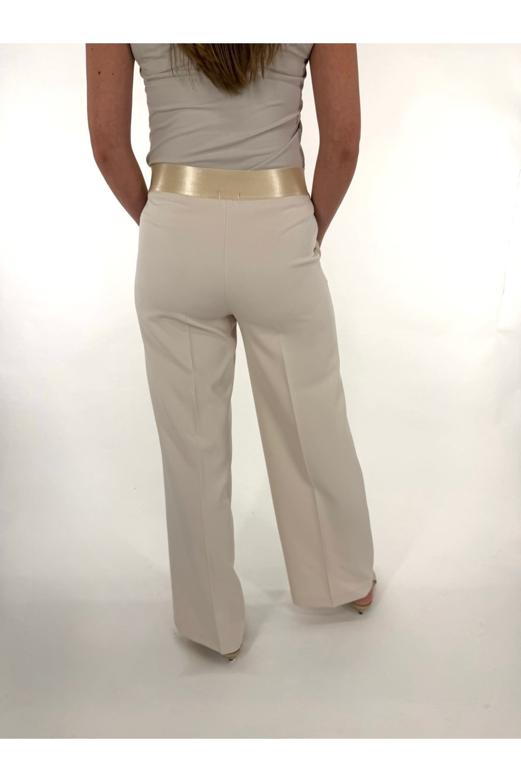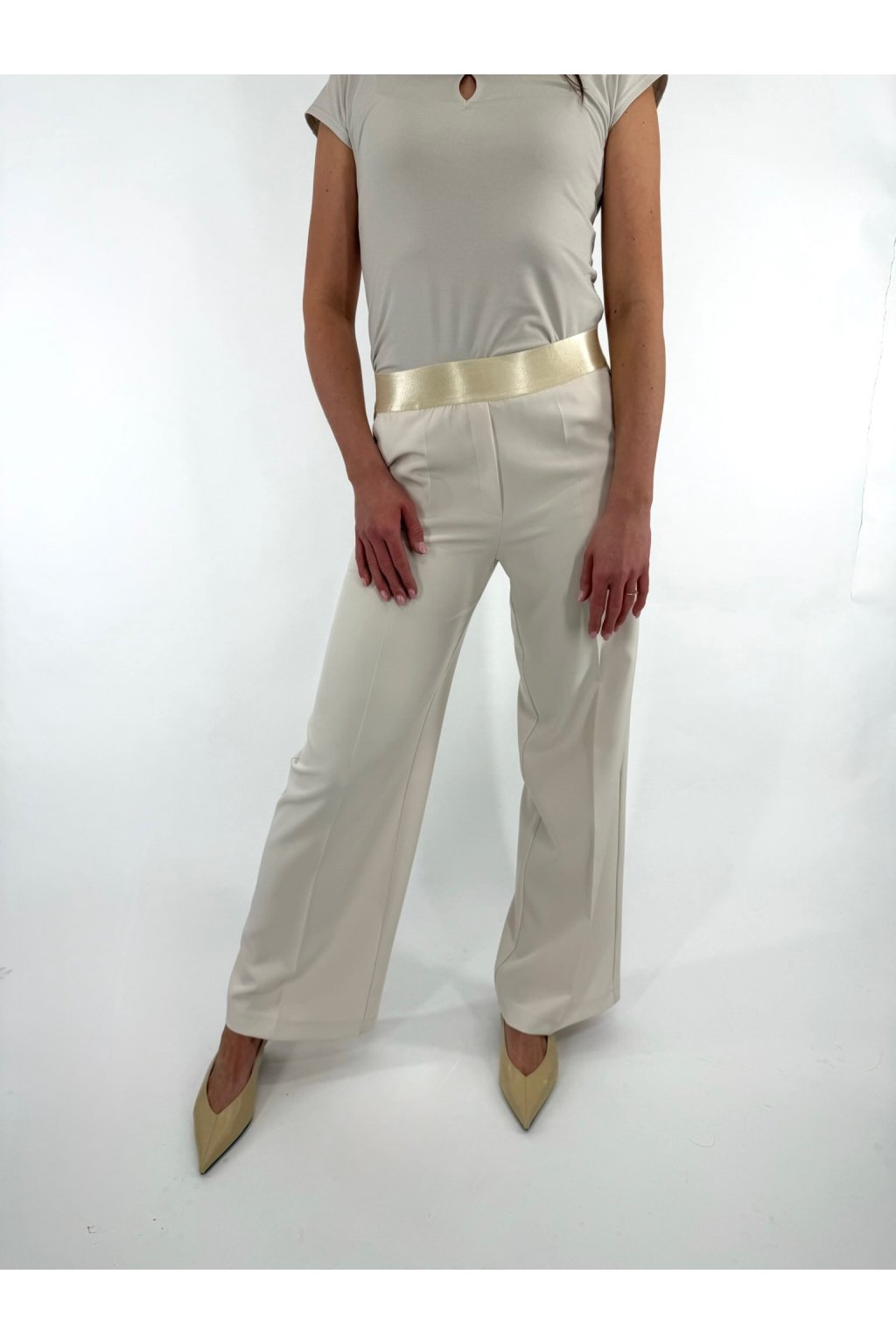 Široké nohavice jsou hitem sezóny a v kombinaci s pukem vypadají naprosto luxusně. Abychom však neobětovali pohodlí stylu, v pase jsme zvolili pružnou gumu. Tyto kalhoty jsou stvořené pro vrstvení – doplňte je naším sakem nebo vestou a vytvořte nadčasový outfit, který lichotí každé postavě. Materiál: 88% Polyester, 12% Elastan
