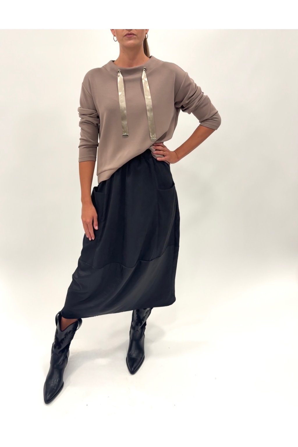 Stylová a pohodlná sukně, kterou si zamilujete! Díky pružné gumě v pase perfektně sedí a krásně se přizpůsobí postavě. Velké, výrazné kapsy dodávají modelu moderní šmrnc a zároveň jsou praktickým detailem. Tato sukně je skvělou volbou jak pro volný čas, tak i do kanceláře – stačí ji zkombinovat s elegantní halenkou nebo mikinou z naší kolekce.