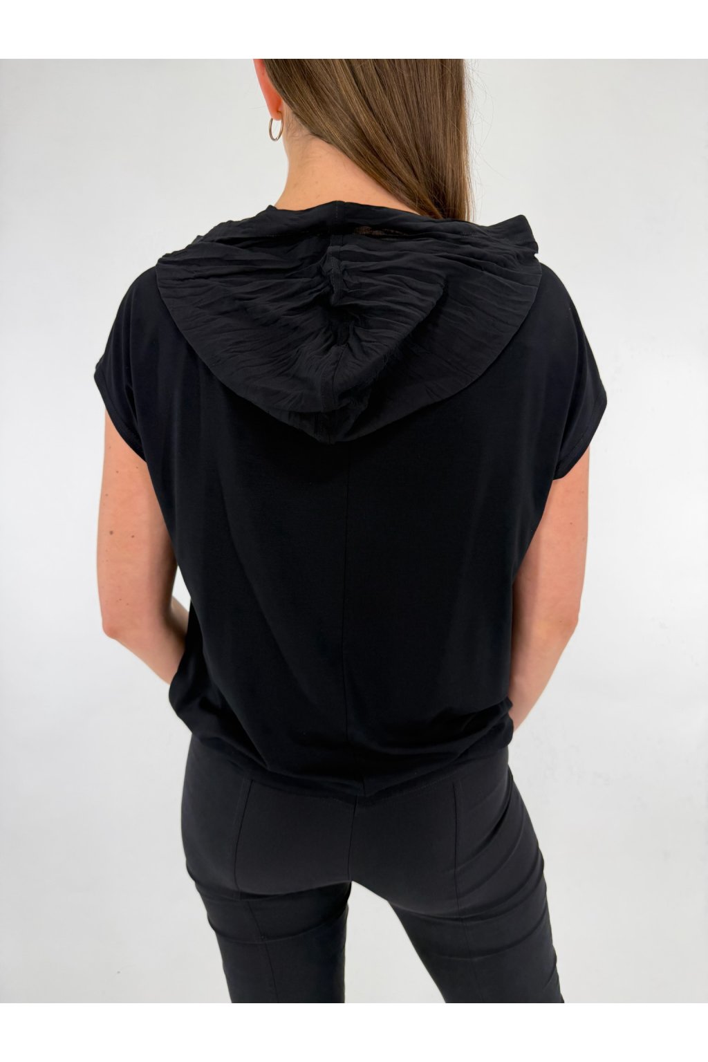 Hledáte kousek, který je něco mezi sportovní ležérností a městskou elegancí? Toto lehké triko s krátkým rukávem vás nadchne svou jemností. Dominantou je kapuce s krásnými stahovacími šňůrkami, které dodávají šmrnc, zatímco spodní guma zajistí, že triko skvěle sedí a drží tvar. Díky vysokému podílu viskózy je neuvěřitelně příjemné na dotek. Materiál: 93% Viskóza, 7% Elastan