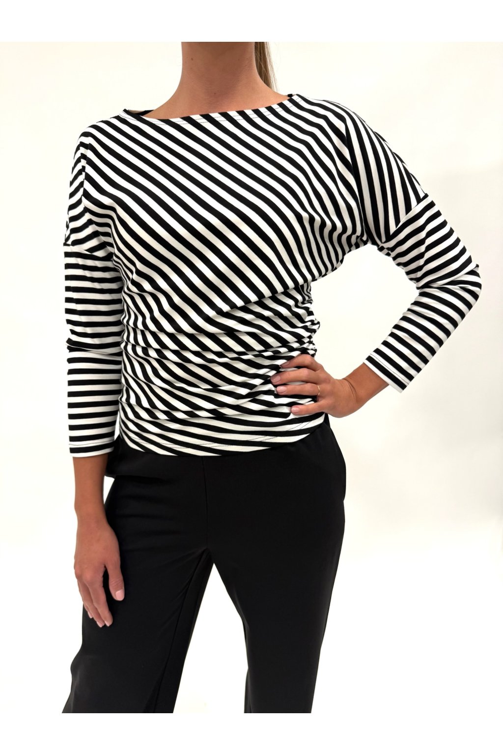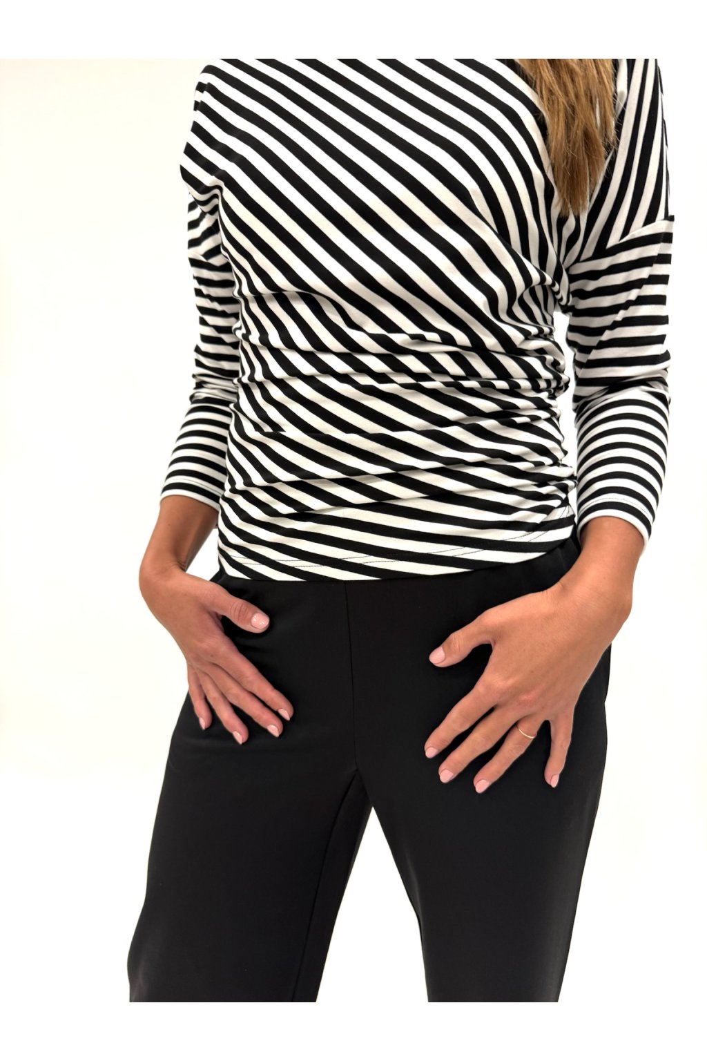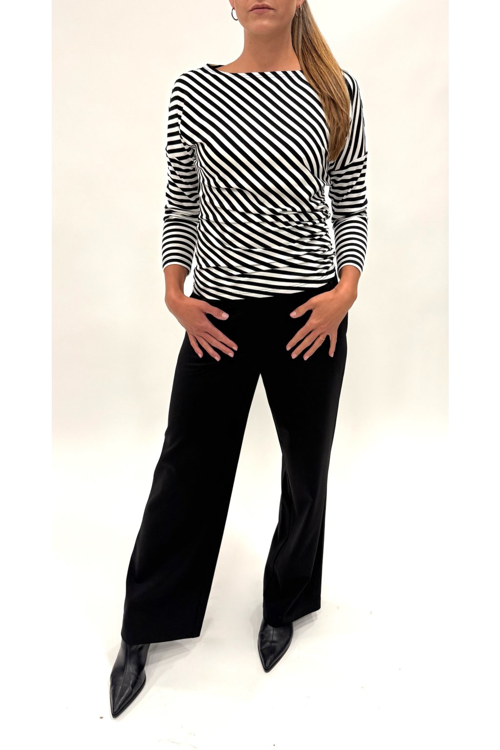 Jednoduché, a přesto nesmírně elegantní! Toto triko s dlouhým rukávem a lodičkovým výstřihem je vyrobené z měkké směsi viskózy a elastanu, která se krásně přizpůsobí postavě. Skvěle se hodí jako základ pro vrstvení — zkuste ho kombinovat s naším sakem nebo vestou pro vytříbený, ženský look.