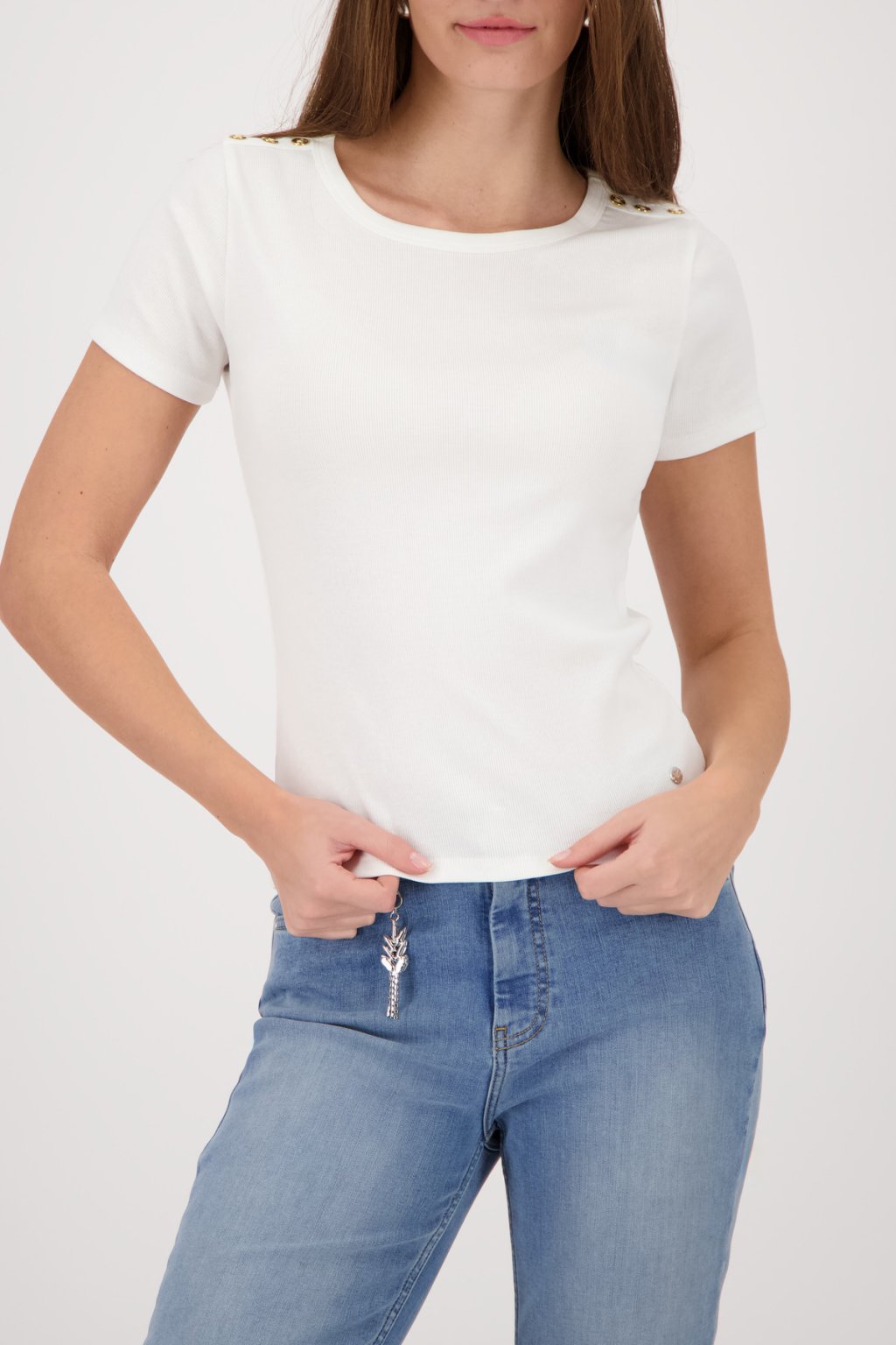 Elegantní žebrované tričko z vysoce kvalitní bavlny . Knoflíkové na ramenou dodávají triku eleganci. Materiál: 94% Bavlna, 6% Elasthan