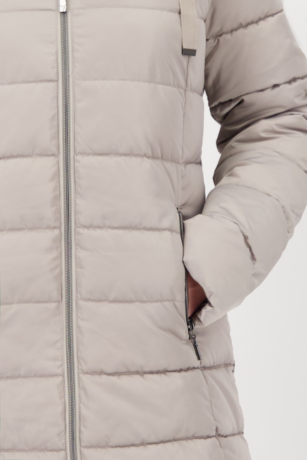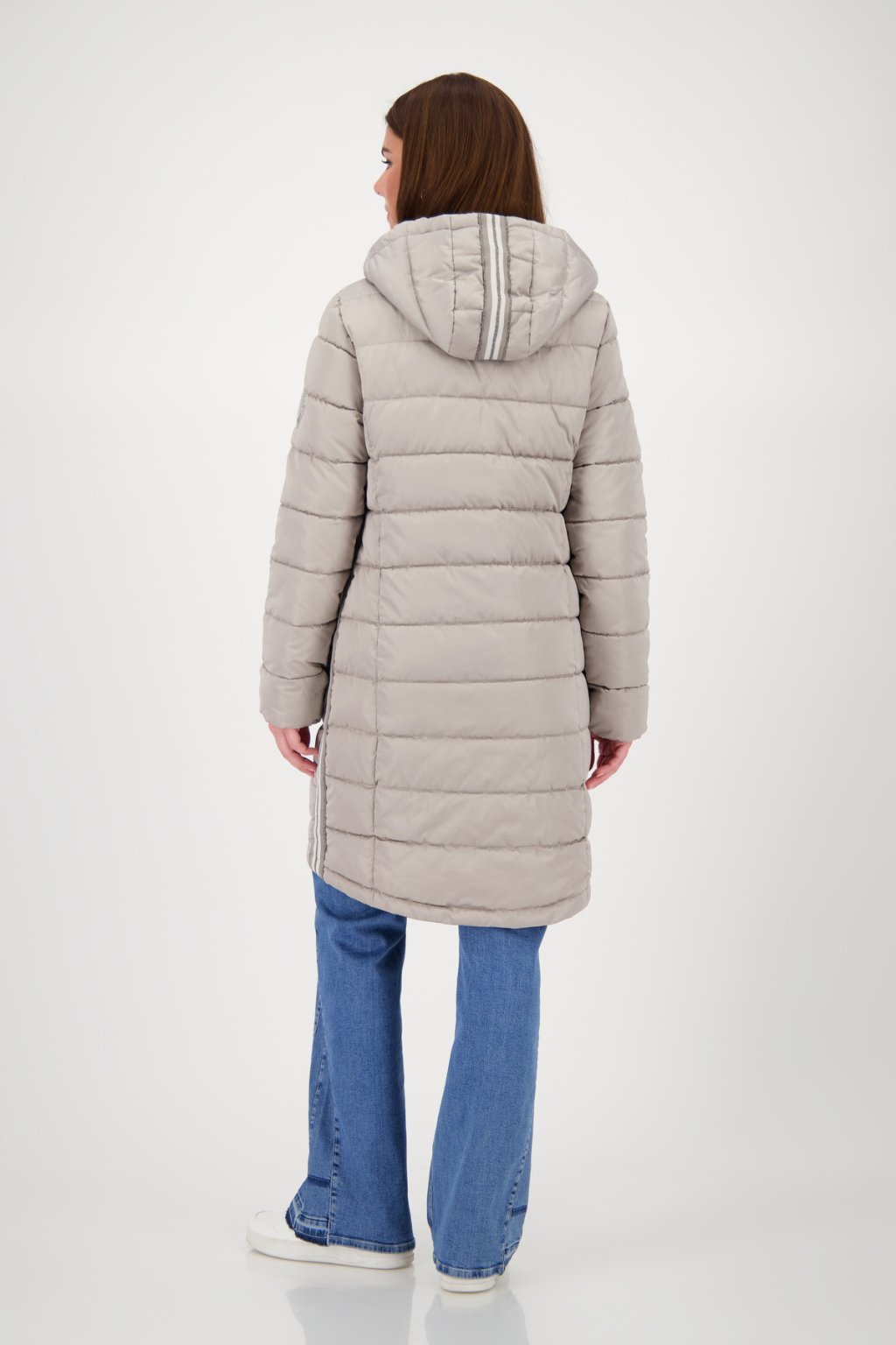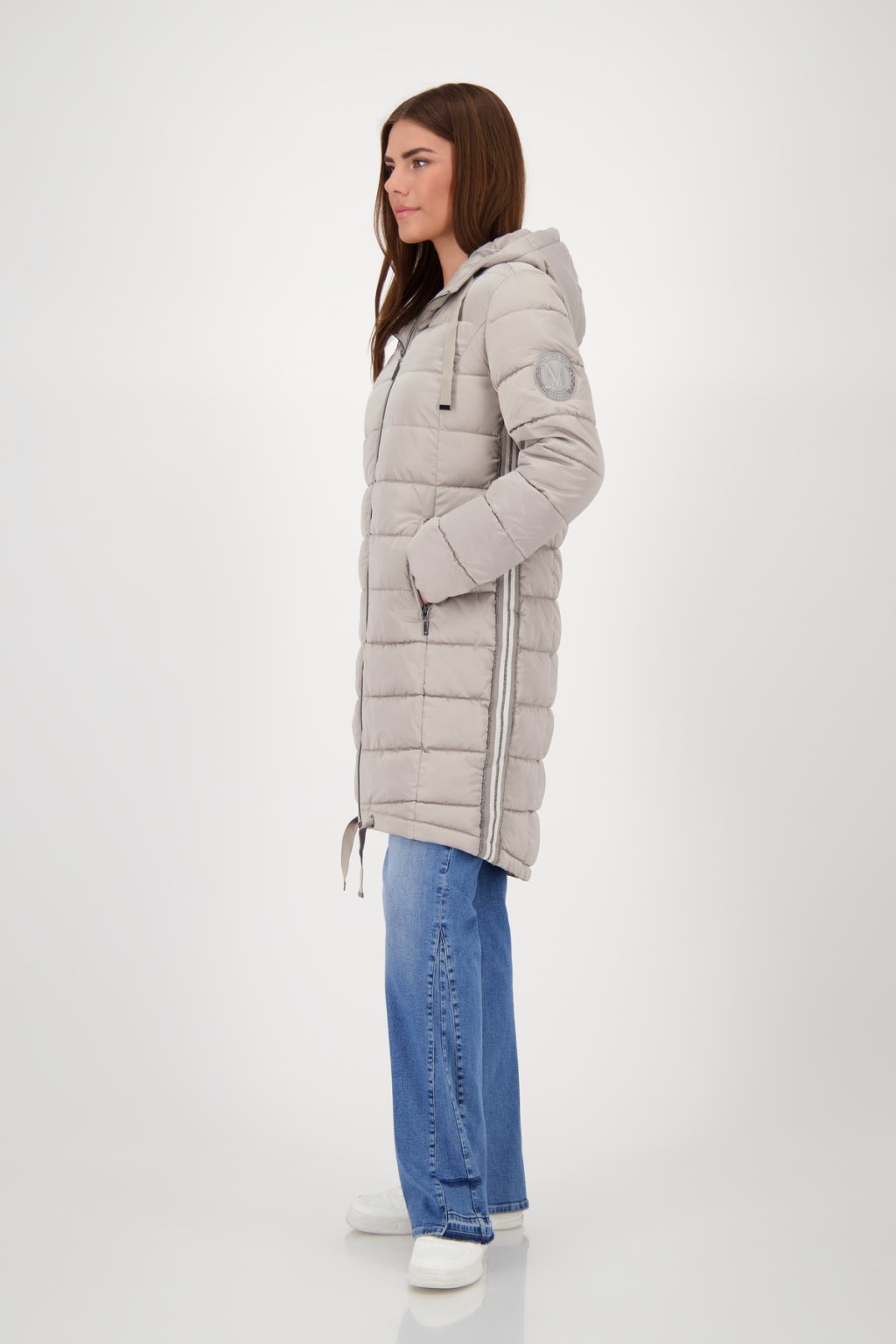 Tento moderní prošívaný kabát Monari kombinuje pohodlí se stylem. Lesklé lurexové pruhy dodávají módní akcenty, zatímco kapuce s vázáním a prodloužená záda nabízí dodatečnou ochranu před nepříznivým počasím. Rovný střih zajišťuje pohodlný a nadčasový střih. Materiál: 100% Polyester