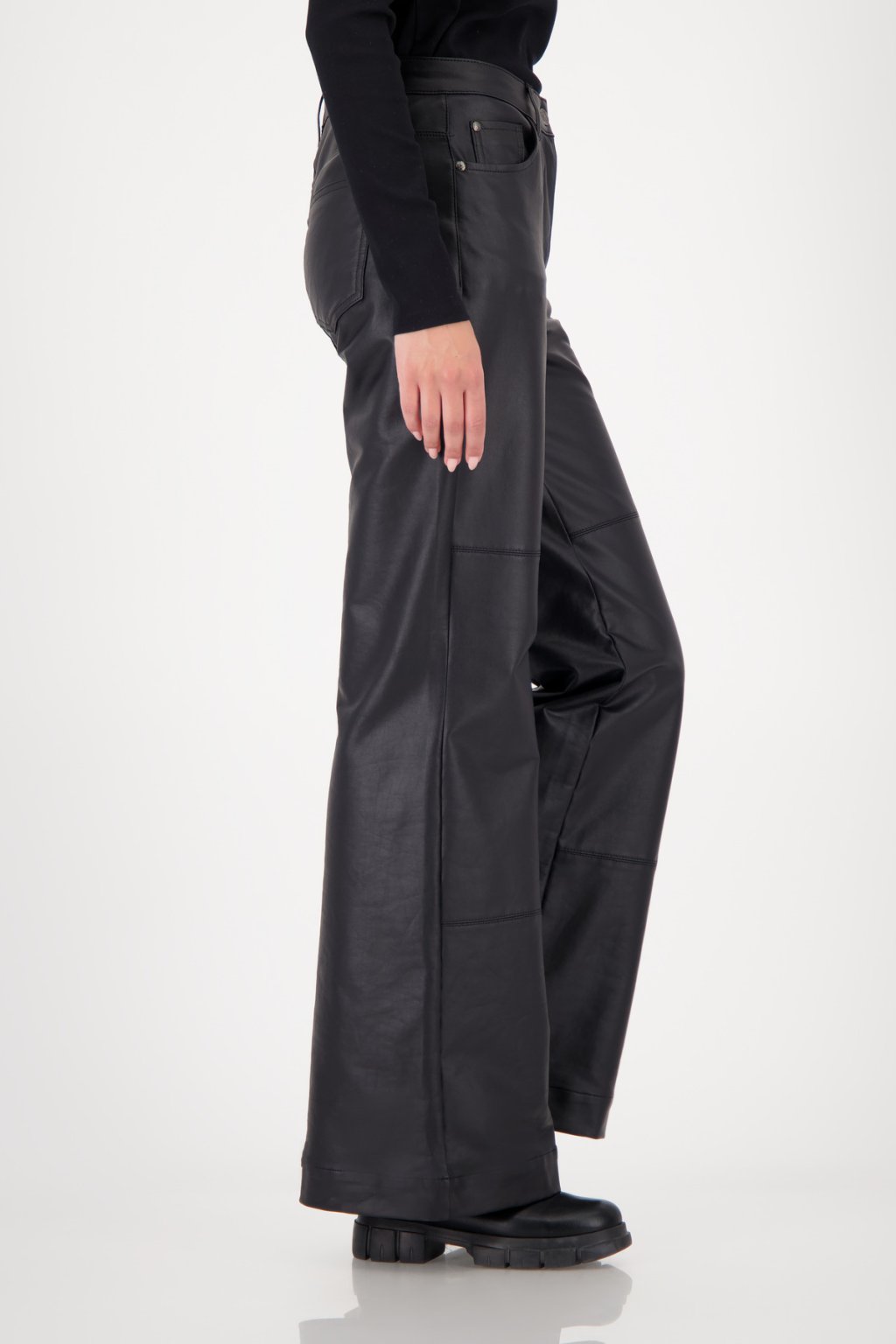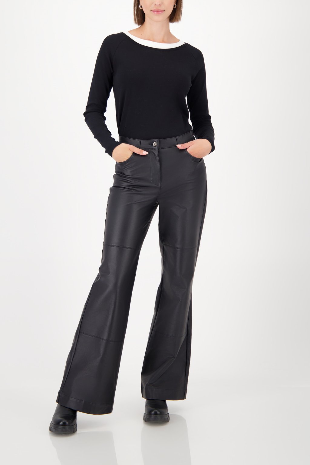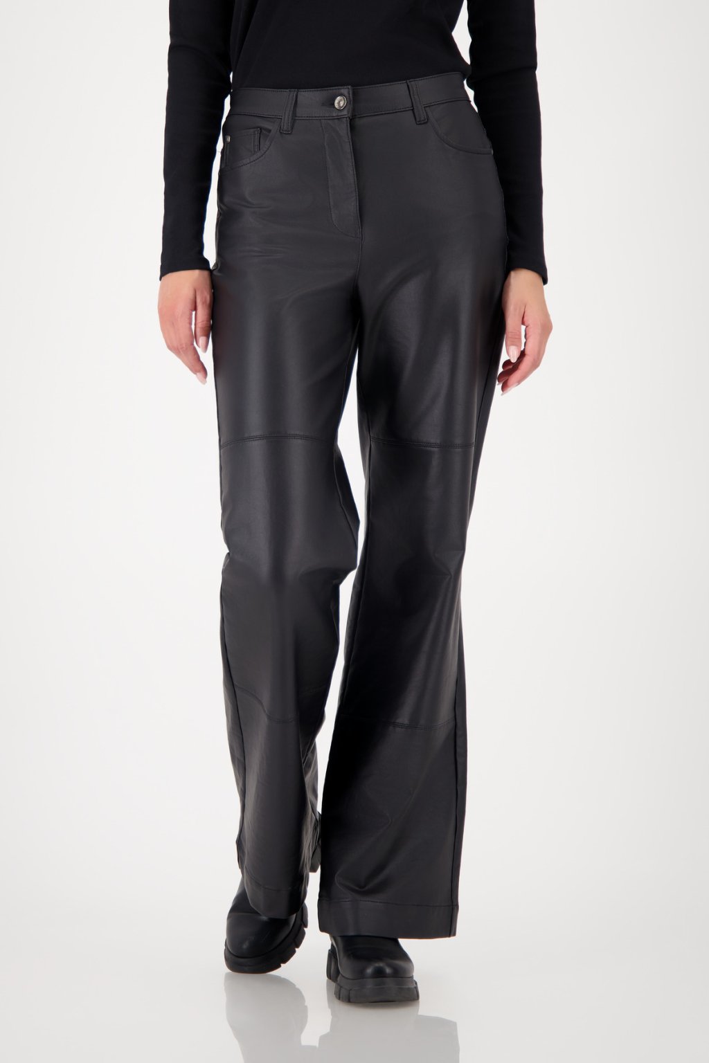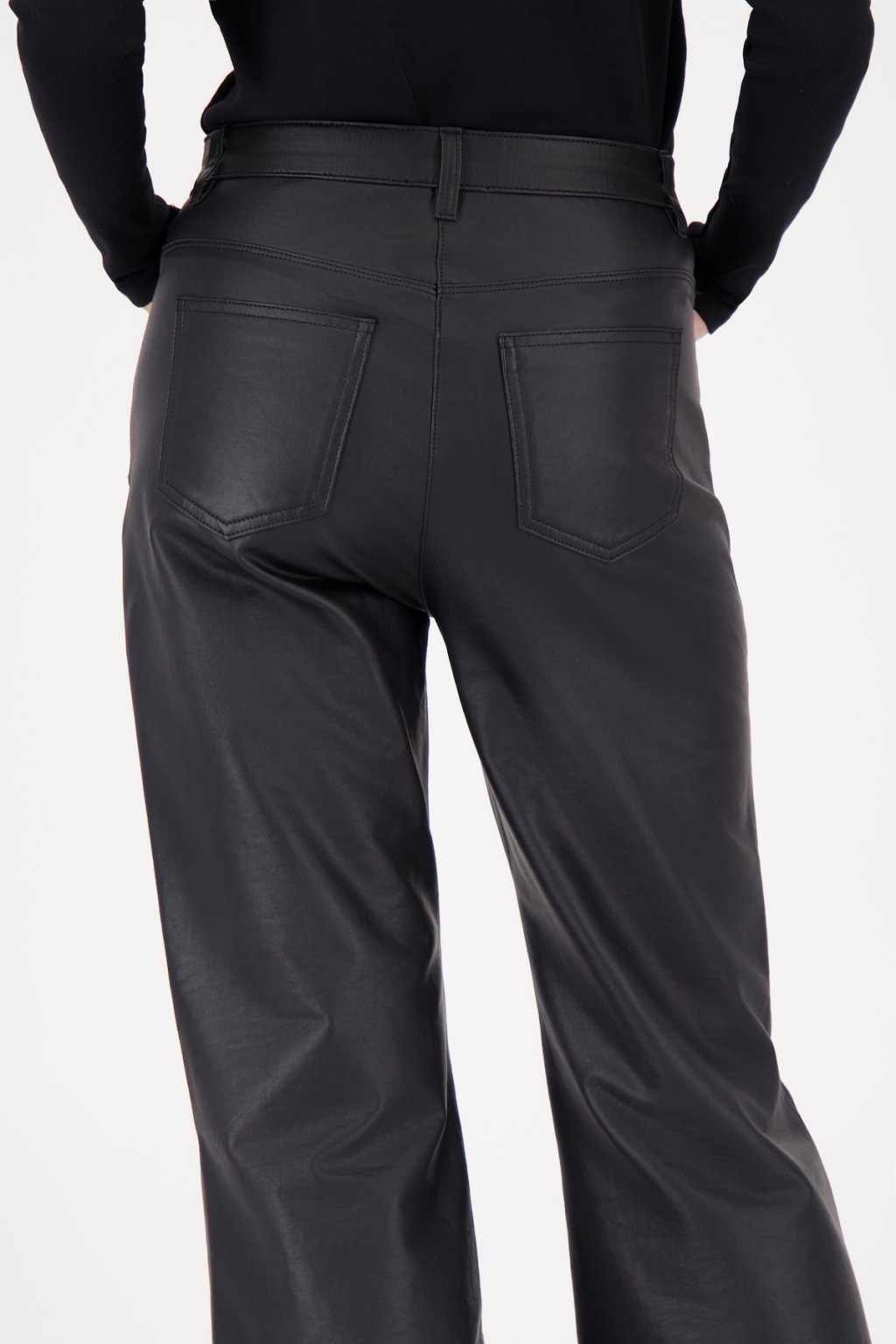 Tyto kalhoty bootcut v koženém vzhledu kombinují vysoce kvalitní bavlnu s elastickým materiálem a elegantními bočními kapsami pro moderní vzhled.