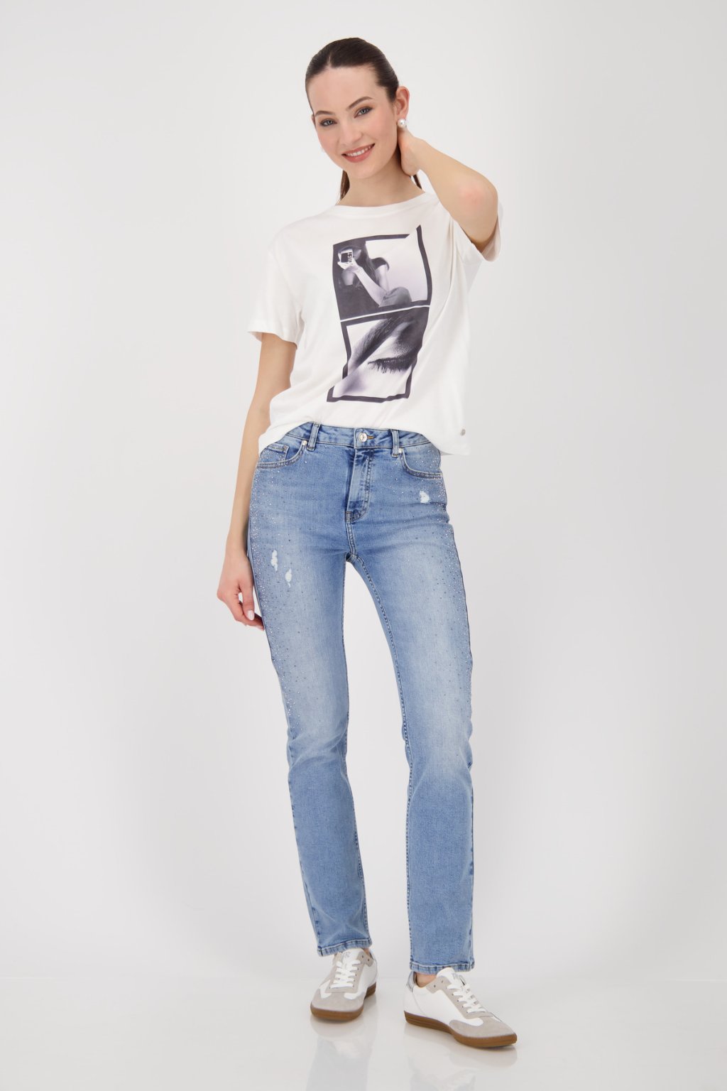 Stylové tričko Monari s krátkým rukávem je vyrobené z vysoce kvalitní bavlněné směsi s modalem, má kulatá výstřih a zaujme svým jedinečným potiskem.