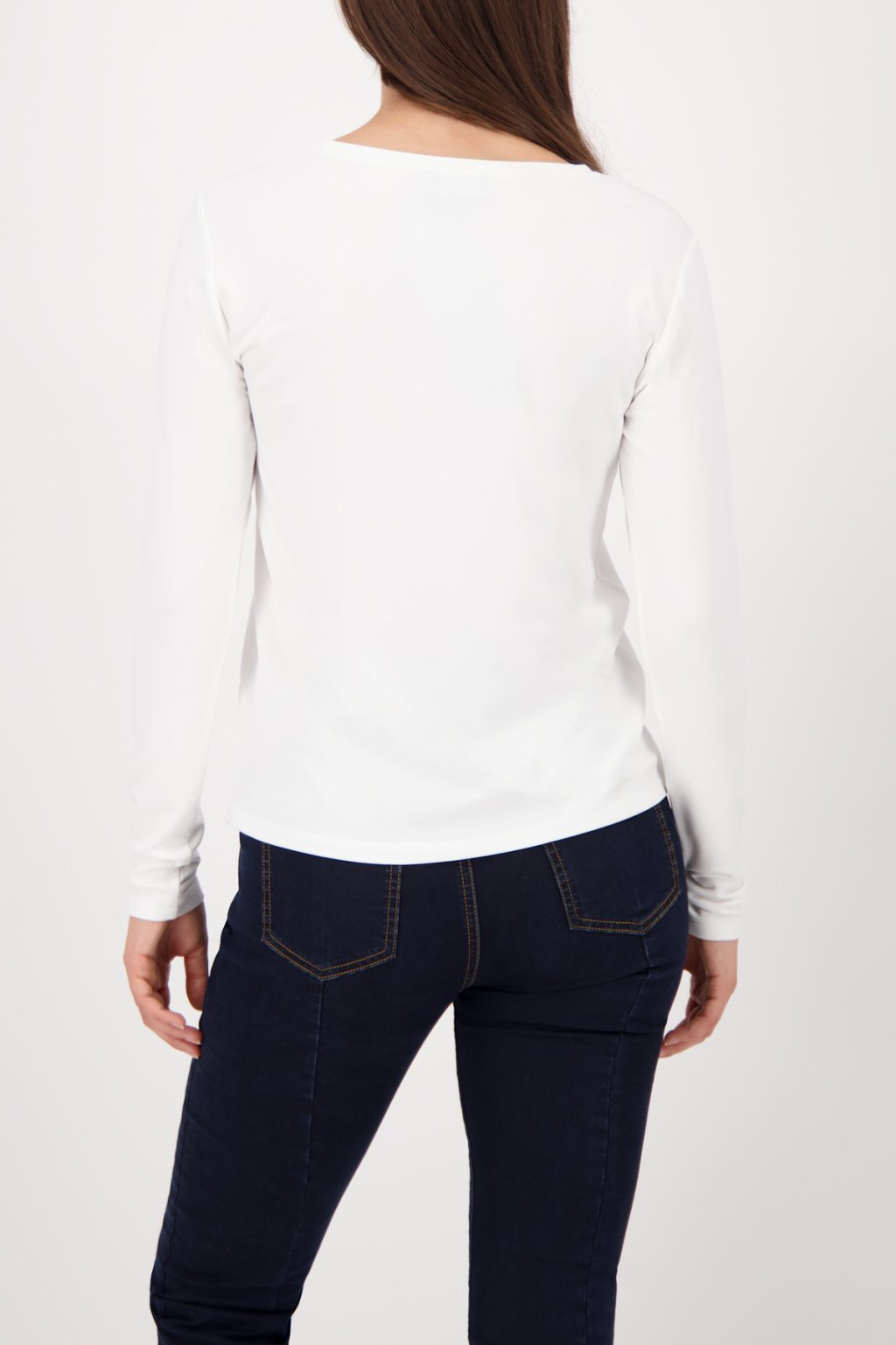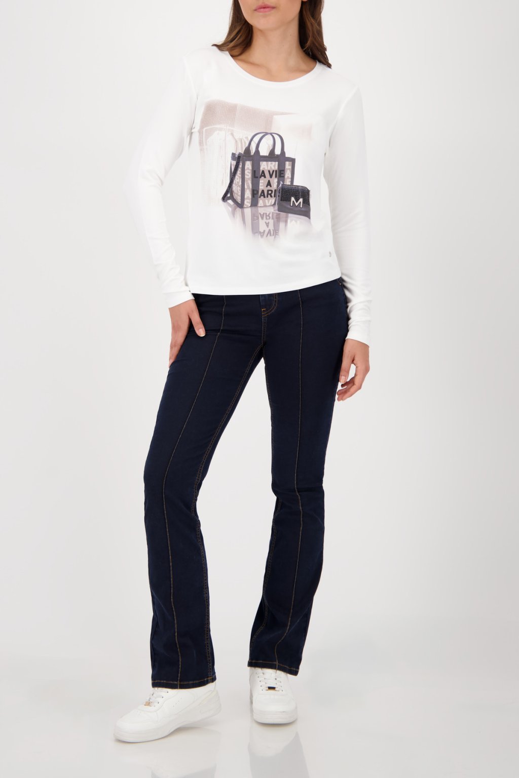 Stylové tričko Monari z elastické viskózy s kulatým výstřihem a dlouhým rukávem. Potisk kabelek doplněný jemnými třpytivými kamínky dodává kousku elegantní a originální vzhled. Vhodné pro každodenní nošení.